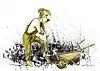 No har eg funne ein spade og ei trillebår og begynt å grava i plenen, på det våtaste punktet. Målet er å finna ut kva som gjer at vatnet samlar seg her, og så leia vatnet vekk.