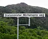 Alf Andresen i Bergen har eit godt døme på ein veg der namnet rett og slett sprenger rammene for det styresmaktene har rekna med at eit skilt skal kunne vera. Når det i tillegg er vegen til vår smått legendariske statsminister som fekk oss fri frå svenskane, bør det vel ikkje vera ei overrasking at det ville koma ein veg etter han.