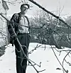 Olav H. Hauge framfor huset på Rossvoll, fotografert kring 1960.