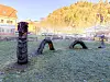 Rett ved meg bukta ein lang sjøorm seg over plenen. Eg