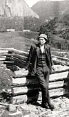 Olav Nygard på Horveid i Evanger, i gang med å byggja seg hus der. Ukjend fotograf / NTB