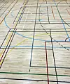 På golvet kryr det av strekar i alle moglege fargar. I nokre salar så mange at sjølv ein kroppsøvingslærar slit med å vite kva dei eigentleg skal brukast til. Det er merkt opp for basketball, handball, volleyball og innebandy, men så blir det vanskelegare.
