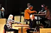 På scenen plasserte Iunker operasongarar, musikarar og åtte kvinnelege sjakkspelarar. Musikken var kopla til sjakktrekka slik at kvart sjakkbrett hadde ein unik klang. Sjakkmusikken høyrest ut som avansert jazz, og ingen kan seia at det ikkje svingar av sjakken i Historischer Materialismus.