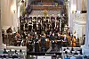 Nederlandske Ton Koopman dirigerer barokkorkesteret sitt i Nikolaikyrkja i Leipzig.