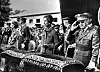 Siste helsing: Franco (til høgre) med kona Carmen Polo fotografert i oktober 1975. Han døydde i november. Til venstre prins Juan Carlos og prinsesse Sophie.