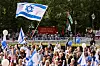 Organisasjonen Med Israel For Fred (MIFF) markerer Israels nasjonaldag utenfor Stortinget i mai i år. I bakgrunnen demonstrerer propalestinarar.