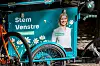 Venstre-leiar Guri Melby smiler på valkampstanden på Karl Johan i Oslo.