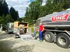 Magne Sylvarnes står på kaien og tek imot oss. Mannskapet på «Tansøy» heiser over mjølketanken. Kvar tredje dag sender Magne mjølka med båten til meieriet i Vik, der ho vert til gamalost. No er tanken tilbake og skal fyllast på ny, men fyrst skal han fraktast dei 90 høgdemeterane opp til gardstunet. Eg får sitja på i førarhuset på den nye Caron Transporter-en, ein to år gamal italiensk traktor bygd for gardsdrift i Alpane og perfekt for dei bratte bøane på Sylvarnes.