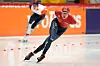 Sander Eitrem heldt begge armane på ryggen også i svingane i rekordløpet på 5000 meter i Inzell.