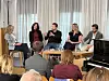 Trygve Svensson talar i ein panelsamtale ved lanseringa av ytringsfridomsstrategien til regjeringa tysdag 23. september. Panelet frå venstre: Erle Marie Sørheim, Kjersti Thorbjørnsrud, Trygve Svensson, Adele Matheson Mestad og Paul Buvarp.