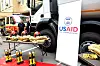 Ukrainske redningsarbeidarar i Kyiv får nytt utstyr av United States Agency for International Development (Usaid). Trump har no kravd stans i Usaid-finansieringa i Ukraina.