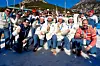 Statsminister Jonas Gahr Støre (Ap) og kronprins Haakon saman med stafettgullvinnarane Emil Iversen, Martin Løwstrøm Nyenget, Einar Hedegart og Johannes Høsflot Klæbo på vinter-OL i Milano/Cortina.
