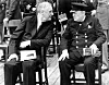 President Franklin D. Roosevelt og statsminister Winston Churchill om bord på slagskipet «Prince of Wales» utanfor Newfoundland 10. august 1941. Roosevelt erklærte støtte til Storbritannia, sjølv om USA enno ikkje var med i verdskrigen.