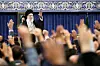 Farvel? Ayatolla Ali Khamenei vinkar til medlemer av den inste krinsen av iranske styresmakter i Teheran på eit møte i mai.