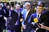 Simen Velle, Hans Andreas Limi og Tor Mikkel Wara følgjer med på resultata som kjem inn, på valvaka til Framstegspartiet på Hotel Bristol i Oslo ved stortingsvalet 2025.