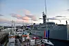 Eg ber Hauksson gå til høgre på bryggja. Gjennom kameralinsa ser eg no eit imponerande byggverk i reflekterande glas i horisonten. Det er konserthallen Harpa, som har fått den mest dominerande båten i hamna som nabo. Det er Kystvakta – det nærmaste Nato-landet Island kjem eit sjølvstendig forsvar.