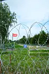 Det gjaldt her ved grensestøtta òg: Rett nok fanst det grensegjerde innover i skogen, men dei var ikkje mykje meir avanserte enn at ein kunne klatre over. No er det einaste som kjem over grensa utan spesialløyve, ein stork som krinsar over oss. Her, langt aust i Europa, har han vore eit symbol på harmoni og fred. No svevar han høgt over oss, heva over all geopolitikk, som ein framand utopi.