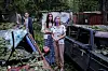 Overlevande ser heimen sin stå i flammar etter russiske droneåtak mot bustadblokker i Kyiv i Ukraina 17. juni 2025.