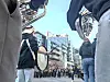 Dagens skulekorps møtest for å battle. Lørenskog-dirigent Ante Skaug (i midten) og musikantane gir jernet mot motstandarane i ei nær to timar lang speleøkt på Aker Brygge i Oslo 6. mai.