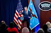 Krigsminister Pete Hegseth under ein pressekonferanse om åtaket på Iran 2. mars.