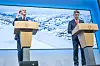 Statsminister Jonas Gahr Støre og olje- og energiminister Terje Aasland på ein pressekonferanse om forsyningstryggleik for kraft i fjor. Denne veka fekk dei fleirtal for forslaget om noregspris på straum.