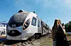 Det ukrainske lokomotivet HRCS2 vart råka av ein russisk drone i Kyiv 28. august 2025.