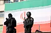 Medlemmer av det iranske politiet er med på ein demonstrasjon til støtte for regjeringa i Teheran 12. januar.