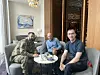 Ihor Kovalenko, Atle Grønn og Volodymyr Kovaltsjuk, visepresident i det ukrainske sjakkforbundet, er samla på Hilton hotell i Kyiv 31. juli.