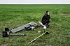 Ein jordbrukar har slege seg ned på restane av ein drone på kveiteåkeren i Dnipropetrovsk 2. april.