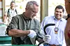 USAs helseminister Robert F. Kennedy junior siklar over eit par niauge på eit oppdrettsanlegg i Idaho i USA i 2025. Vi får tru han hugsar korleis det gjekk med kong Henrik 1. i 1135.