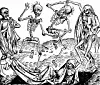 Dans og kroppsleg forfall er ikkje berre eit fenomen ved norske skular, men også eit gamalt motiv i kunsten. Her frå Nürnberg-krøniken frå 1493.